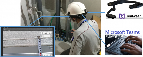 新型コロナウイルスの影響が長引く中、建設現場においては人の移動制限により専門知識を有する職員が現地での対応ができず工期遅れとなるリスクが懸念されています。そこで、NSWと竹中工務店は、竹中工務店がすでに社内でコミュニケーションツールとして活用しているマイクロソフト社の「Microsoft Teams」に、NSWが提供する「RealWear」を組み合わせ、事務所と現場間のリアルタイムな情報共有や遠隔支援を行うことで建設プロジェクトの進捗状況を測りました。