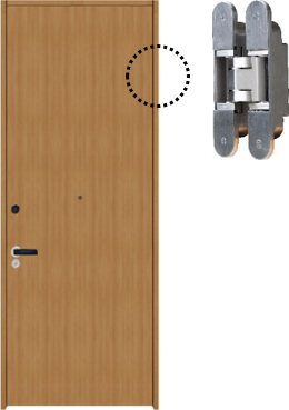 1.重量扉に耐えられる隠し丁番仕様での認定を取得しました(EA-0517)。扉を閉じた時、表からも裏からも丁番が見えません。