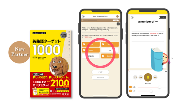 「ターゲットの友」は本書に対応することで、単語も熟語も1つのアプリで学べるようになり、大学入試で問われる幅広い英語表現の効率的な学習が可能となりました。今後もコンテンツの追加や機能のアップデートを続け、英語学習に一層役立つアプリを目指してまいります。