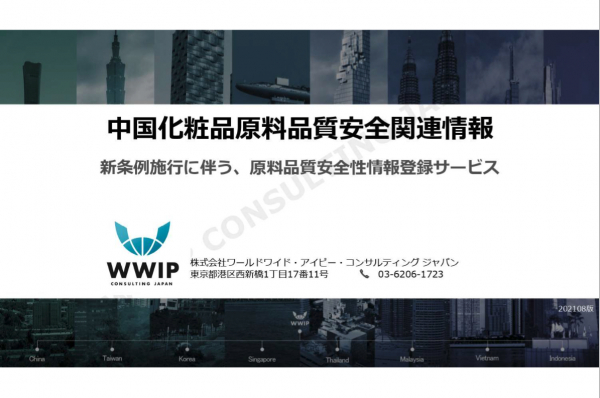 株式会社ワールドワイド・アイピー・コンサルティングジャパン(以下「WWIP」という)では上記規定に基づき、あらためて具体的な代行サービスの内容と費用を発表(3月発表のサービス内容を訂正、補充)、「化粧品原料の事前登録制度」に対応するサービスの提供を8月1日より開始します。
