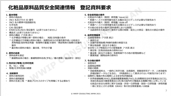 ・2022年1月以降:特殊化粧品効能にあたる原材料は安全関連情報(添付資料14)の提出が必要。