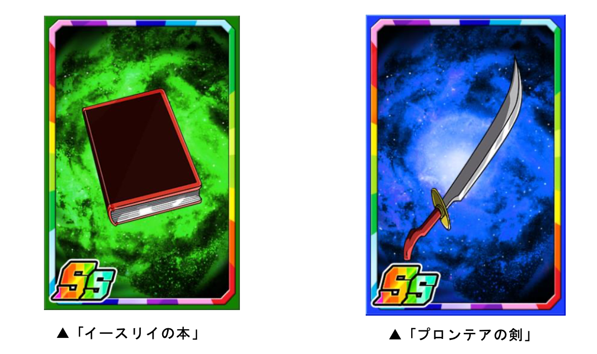 コラボスペシャルダンジョンのボスを倒すと、まれに限定子分カード「イースリイの本」「プロンテアの剣」を手に入れることが可能です。