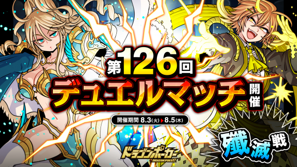 株式会社アソビズム(本社:東京都千代田区、代表取締役:大手智之)は、App Store・Google Playにて好評配信中のリアルタイム合体カードバトル『ドラゴンポーカー』で、2021年8月3日(火)より「第126回デュエルマッチ本戦」を開催いたします。