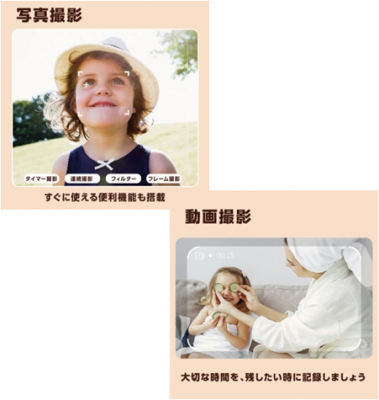 タイマー撮影・連続撮影・フィルター・フレーム撮影と様々な機能を搭載しています。