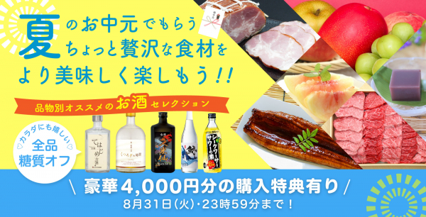 8,000円以上の商品お買い上げの方に、お中元を楽しむ食卓をさらに楽しく彩る『4,000円分の特典』をもれなくお付けしています。