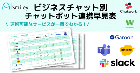 人工知能を搭載したサービスの資料請求ができるAIポータルメディア「AIsmiley」を運営するアイスマイリー(東京都渋谷区、代表取締役:板羽晃司)は、ビジネスチャットと連携可能なチャットボットサービスをまとめた「ビジネスチャット別AIチャットボット連携早見表2021年度版」を2021年8月10日に公開します。