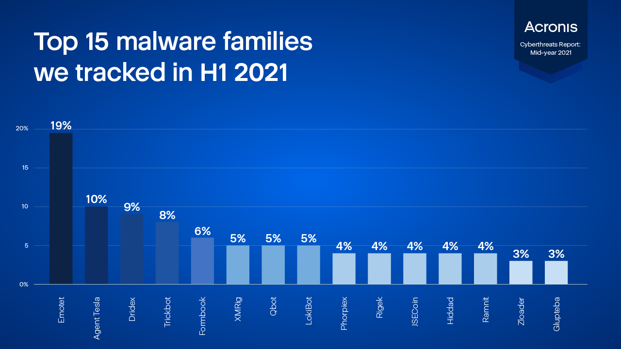 サイバープロテクション分野のグローバルリーダーであるアクロニスは本日、「Acronis Cyberthreats Report Mid-year 2021 update(アクロニス サイバー脅威レポート2021中間アップデート)」をリリースしました。このレポートは、アクロニスのエキスパートが追跡しているサイバー脅威の傾向を詳細にまとめたものです。アクロニスがダイヤモンドスポンサーを務める今週のイベント「Black Hat 2021」で発表されたこのレポートでは、今年の上半期に見られた攻撃の傾向から、中小企業(SMB)が特に危険にさらされていると警告しています。