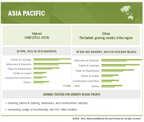 Latex Binders Market by Type (Styrene Acrylic, Styrene Butadiene), End-use Industry (Paints & Coating, Adhesive & Sealant, Paper & Paperboard, Textile & Carpet, Construction & Fiber Bonding Materials), and Region - Global Forecast to 2026