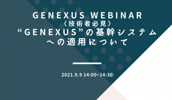 ジェネクサス・ジャパン株式会社は2021年9月9日(木)14時よりGeneXus Webinarを開催します。