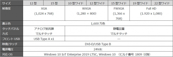 静電容量タッチパネルを搭載しジェスチャー操作に対応したワイドモデルと、旧機種と互換性があり幅広い環境で使用できる4:3モデル(アナログ抵抗膜)を完備