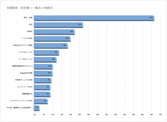 グラフに表示している「申請割合」は、見積もり受付開始日時(見積もりフォームに選択肢として追加された日時)から何件見積もりの依頼があったかを考慮して算出しています。