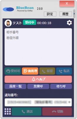 保留や転送などの操作はBlueBeanオペレーター画面から操作可能なので、業務中ソフトフォンの操作は必要ありません。