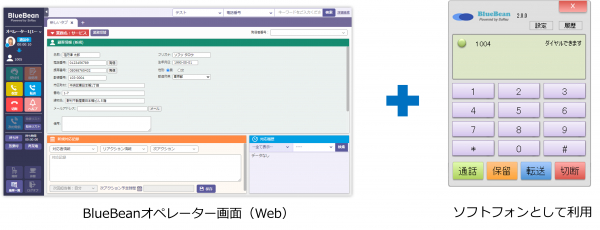 ■BlueBeanオペレーター画面(Web)+「ソフトフォンとして利用」