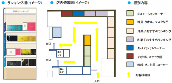 取扱品目: 菓子、ANAオリジナル商品(食品・雑貨)、弁当、飲料、雑貨