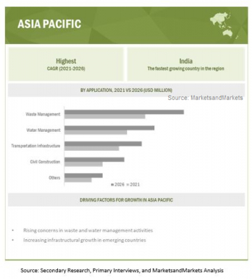 ジオシンセティックス市場:タイプ(ジオテクスタイル、ジオメンブレン、ジオグリッド、ジオフォーム)用途(廃棄物管理、水管理、輸送インフラ、土木建設)地域別の2026年までの世界市場予測 - Geosynthetics Market by Type (Geotextile, Geomembranes, Geogrids, Geofoams, Geonets), Application (Waste Management, Water Management, Transportation Infrastructure, Civil Construction), and Region - Global Forecast to 2026