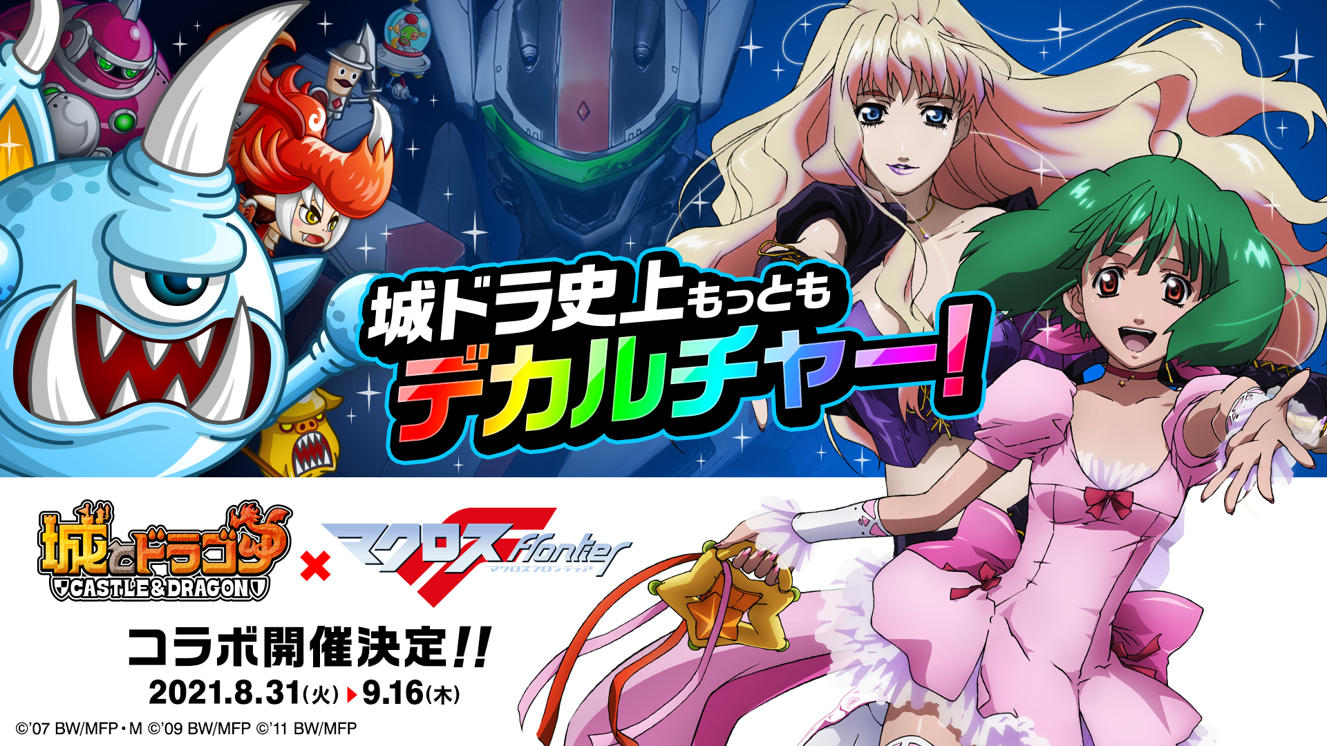 株式会社アソビズム(本社:東京都千代田区、代表取締役:大手智之)は、App Store・Google Playにて好評配信中の『城とドラゴン』で、アニメ『マクロスF』との初コラボイベントを、2021年8月31日(火)より開催決定したことをお知らせいたします。