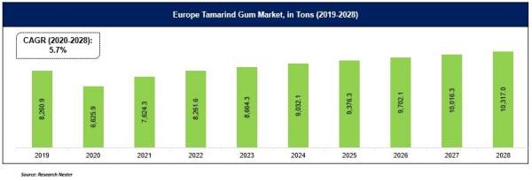 ヨーロッパのタマリンドガム市場は、2080年末までに10,317トンのボリュームを保持する予測されます。