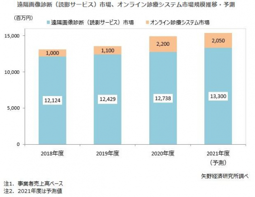 ここでは、遠隔画像診断(読影サービス)市場、およびオンライン診療システム市場の推移について、公表いたします。