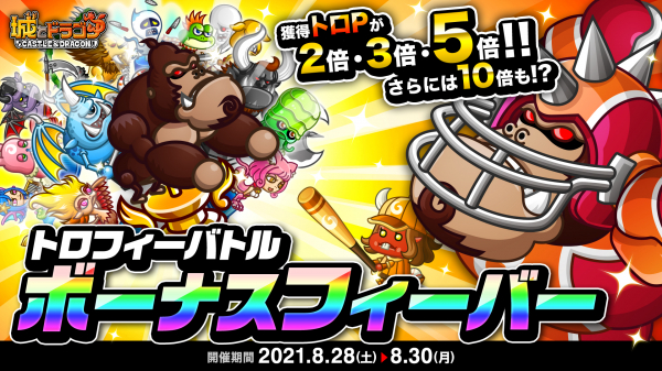 株式会社アソビズム(本社:東京都千代田区、代表取締役:大手智之)は、App Store・Google Playにて好評配信中の『城とドラゴン』で、「トロフィーバトル ボーナスフィーバー」を2021年8月28日(土)より開催いたします。