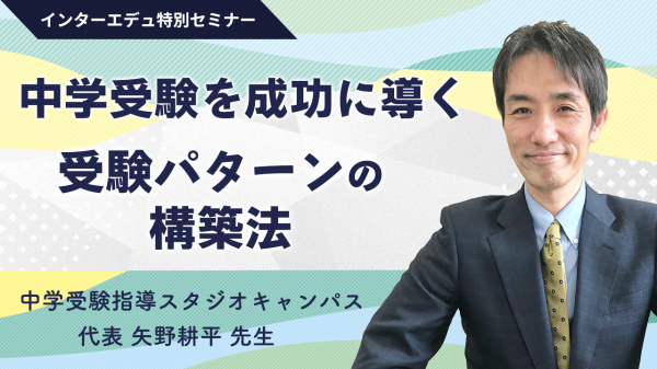 日本最大級の受験教育情報サイト「インターエデュ・ドットコム」は、2021年9月3日(金)より、中学受験指導スタジオキャンパス矢野耕平先生による「中学受験を成功に導く『受験パターンの構築法』」のセミナー動画を会員向けに無料で先行配信します。