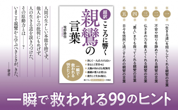 株式会社三笠書房(東京都千代田区/代表取締役:押鐘太陽 http://www.mikasashobo.co.jp )は、8月16日に『超訳 こころに響く親鸞の言葉―――一瞬で救われる99のヒント』著者境野勝悟が、キンドル電子書籍ストアにて配信開始いたしました。