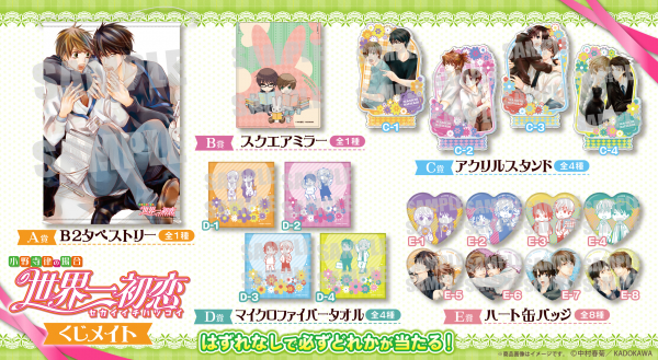 アニメイト通販の「くじメイト」に、中村春菊先生の大人気BLコミック『世界一初恋』のオンラインくじが登場です。