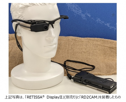 2020年3月16日より、当社はQD レーザ社の販売代理店として、網膜走査型のスマートグラス「RETISSA(R) DisplayII」、不正乱視の患者様向けの医療用デバイス「RETISSA(R)メディカル」を展開してまいりました。今回、取扱い開始の「RD2CAM」は、「RETISSA(R) DisplayII」 に直接接続できるHDMI出力を搭載したアクセサリーカメラであり、1,300万画素カメラに最大3倍ズーム機能や読書に適した白黒反転機能など使い勝手の良い機能を搭載しております。