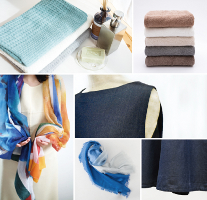 今回はそんな富士北麓地域から、天然素材を活かしたストールを中心に、ストール技術を活かしてつくられた薄く軽いデニムの洋服、空気のようなふわりとやわらかなタオルなどが届きました。