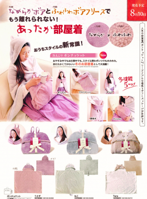 外側になめらかボア、内側にふわふわボアフリース素材を使った、多機能5wayのポンチョケットです。