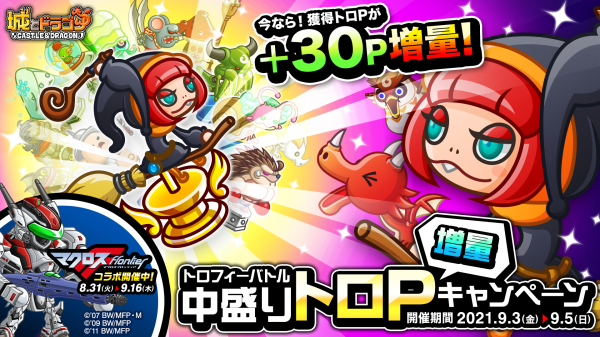 株式会社アソビズム(本社:東京都千代田区、代表取締役:大手智之)は、App Store・Google Playにて好評配信中の『城とドラゴン』で、「トロフィーバトル 中盛りトロP増量キャンペーン」を2021年9月3日(金)より開催いたします。