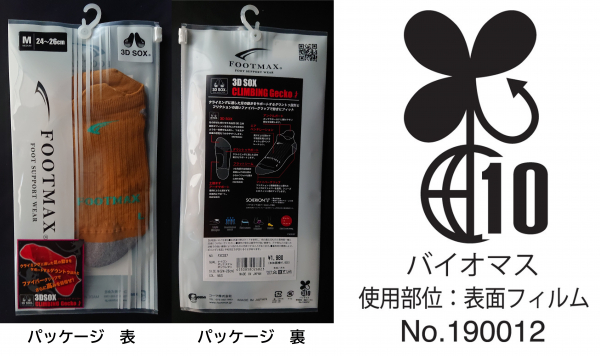 コーマ株式会社(所在地:大阪府松原市 代表:吉村盛善)が、企画・製造・販売していますブランドFOOTMAX(R)において、バイオマスプラスチックを使用したパッケージを8月26日(木)より導入いたしました。新製品「FXC037 3D SOX クライミングゲッコーTM」、「FXB117 3D SOX ロードバイク"ゼブラ"」では、すでに採用し、既存商品も順次切り替える予定です。