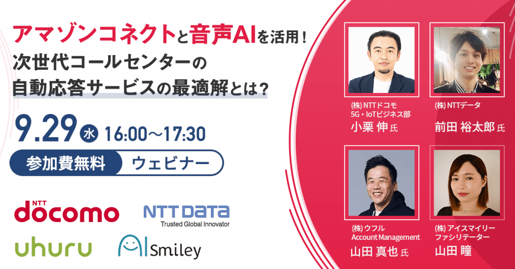 近年、コールセンターの人手不足解決やオペレーターの業務支援にAIチャットボットや、音声認識AIを活用する企業が増えてきています。そこからさらに一歩進み、「AI自動応答サービス」が登場し、顧客の満足度向上や応対品質向上に向けて活用され始めました。今回は、アマゾンコネクト×音声AIにフォーカスし、NTTドコモとパートナー企業2社より次世代コールセンターの最適解についてご紹介します。コールセンター向けAIソリューションに興味のある方は、ぜひご参加ください!