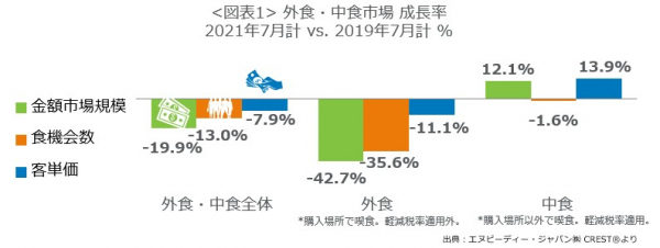 外食・中食市場情報サービス『CREST(R)*1』を提供するエヌピーディー・ジャパン株式会社(東京都港区、クリストス・クリストフォロー代表)は、外食・中食市場2021年7月の動向分析レポートを2021年9月7日に公表します。