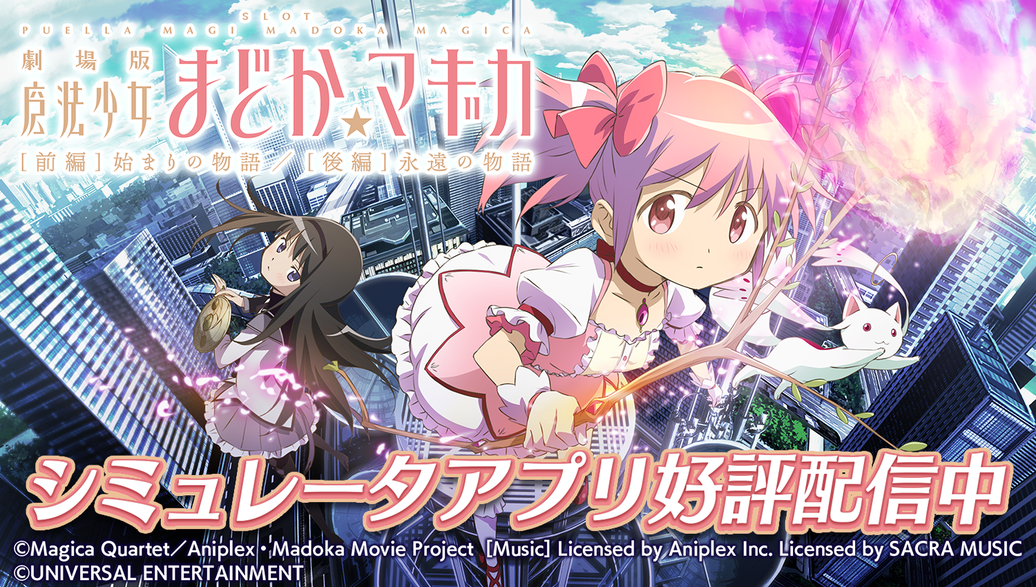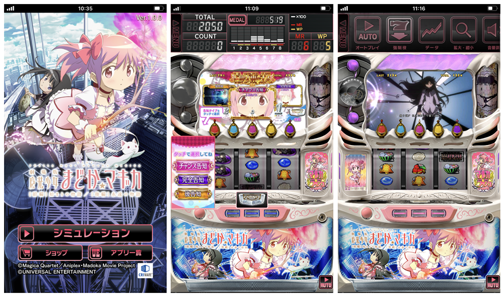 株式会社ユニバーサルエンターテインメント(本社:東京都江東区、代表取締役社長:富士本 淳)は、iOSおよびAndroid向けスロットシミュレータアプリ『SLOT劇場版魔法少女まどか☆マギカ前後編』の配信を、App StoreおよびGoogle Playにて9月9日より開始しました。