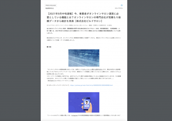 株式会社ビルドサロンが、オンラインサロン開発制作見積もり依頼データから、現在オンラインサロンに必要とされている要件について所感・データを発表しました。