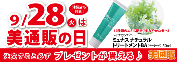 ●2021年9月28日(火)のプレゼントは「レイナカンパニー ミュナス ナチュラルトリートメントBA(ベーシック) 50ml」