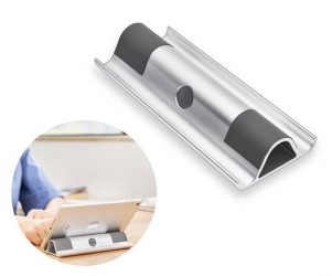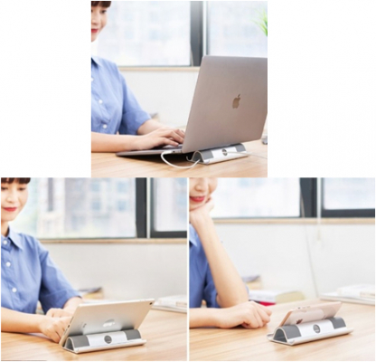 スタンド上部と底面にある滑り止め用のシリコンマットは、タブレットやノートパソコンを固定し、作業中の横滑りと