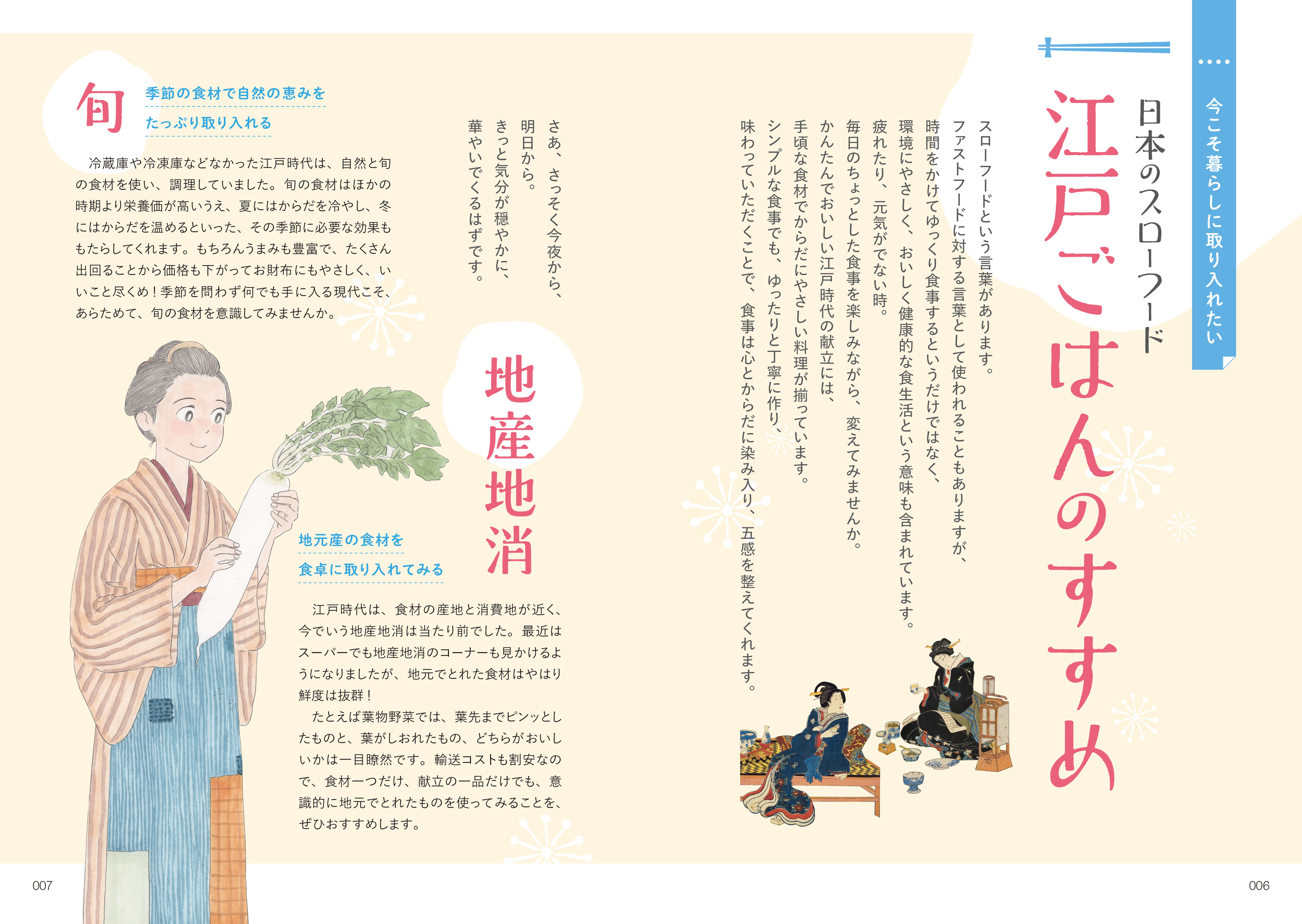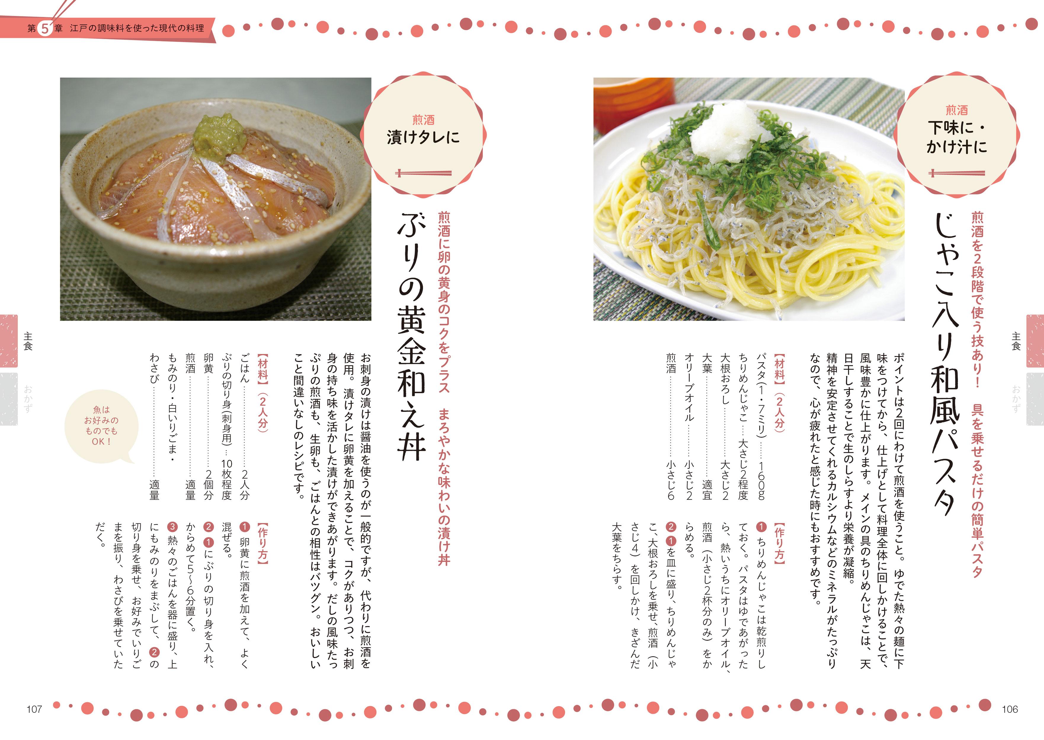 さらに、江戸料理の専門家によるうんちくコラムや、江戸時代の調味料「煎酒」を使ったかんたんレシピなども掲載。
