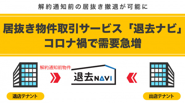 退去ナビはテナント退去希望者が登録した物件と事前にサイト内に登録されている入居希望者の希望条件をマッチングするサービス。店舗を退去するには通常、貸主に解約通知を出したのち約半年の賃料や原状回復費用が必要で数百万円~数千万円がかかりますが、退去ナビ内でマッチングして解約通知前の物件を居抜きで入りたい事業者にそのまま引き継ぐことで解約通知前の居抜き退去が可能となり、退去費用を大きく削減できます。
