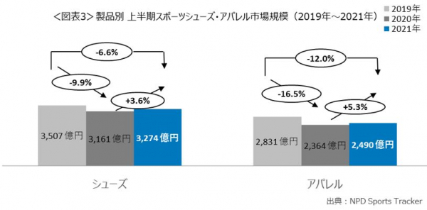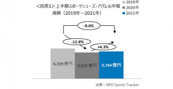 スポーツシューズ・アパレル市場規模、2021年1月-6月は前年同期比4.3%増