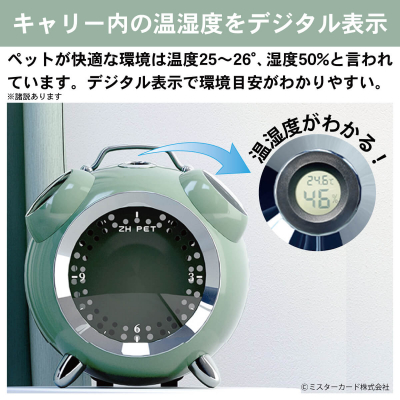 ミスターカード株式会社(本社所在地:埼玉県川口市)は、温湿度デジタル表示機能付きでリュックタイプで持ち運べるペットキャリー「カプセルペット」 を2021年9月17日(金)に発売します。可愛い犬や猫にとって快適な温湿度をデジタルで表示することで飼い主が確認できます。アラームクロック・リュックモデルは、リュックと手持ちで使える実用的な2WAYペットキャリーです。お部屋映えするレトロなデザインで、ペットに慣れてもらうまでインテリアとしても楽しめます。クリアで大きな窓と手を入れてコミュニケーションのとれる小窓付きなど便利なペットキャリーはいかがでしょう。