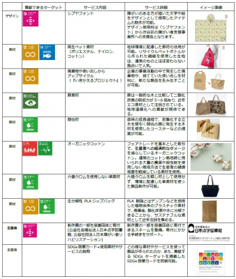 サービス内容 :当社が提供可能なSDGsに貢献するサービス10種をまとめ、デザイン・素材など多方面からのアプローチを提案。
