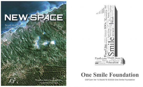 (画像:「NEW SPACE」表紙とOne Smile Foundationロゴ)
