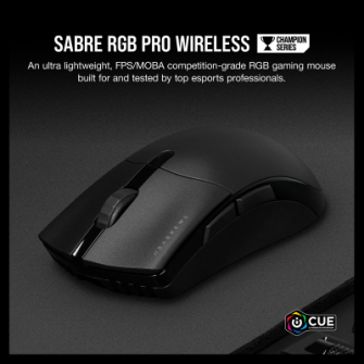 SABRE RGB PRO WIRELESSは、CORSAIR独自のオプティカルセンサーCORSAIR MARKSMANを搭載した、わずか79gの超軽量ワイヤレスゲーミングマウスです。CORSAIR CHAMPION SERIESのマウスとしてプロのeスポーツ選手による監修を受け、形状や徹底した軽量化など細部まで作り込まれており、1ms未満の超低遅延ワイヤレス接続、SLIPSTREAM CORSAIR WIRELESS TECHNOLOGYが、遅延とケーブル双方から開放されたゲームプレイを実現します。