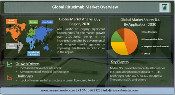 さらに、強力な臨床試験、または製品パイプライン、および新しい医薬品市場のプレーヤーの参入も、予測期間中に市場の成長を大幅に後押しすると予想されます。さらに、リツキシマブは、特発性血小板減少性紫斑病、尋常性天疱瘡、重症筋無力症、エプスタインバーウイルス陽性粘膜皮膚潰瘍、特定の自己免疫疾患および癌の種類の治療に使用され、長年にわたって需要が高まると推定されています。さらに、バイオシミラーの使用に関する意識の高まり、および政府によるヘルスケアへの多額の投資は、市場の成長を推進すると推定されています。