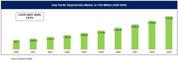 世界の生物農薬市場は2020年に4590.9 万米ドルの収益を上げ、さらに2029年末までに14191.5 百万米ドルに達すると予想されています。また、2021ー2029年の予測期間中に13.4%のCAGRで成長します。市場の成長は、有機食品の需要の高まりにより、世界中で有機農業慣行が急速に急増したことに起因する可能性があります。また、環境安全に対する意識の高まり、生物農薬の使用に関連する利点、農学の分野における技術の進歩と革新の増加など要因は、予測期間中に市場の成長を大幅に促進すると予測されます。さらに、有毒農薬の使用に関する厳格な政府規制も、市場成長の多くの機会を生み出すと予測されています。