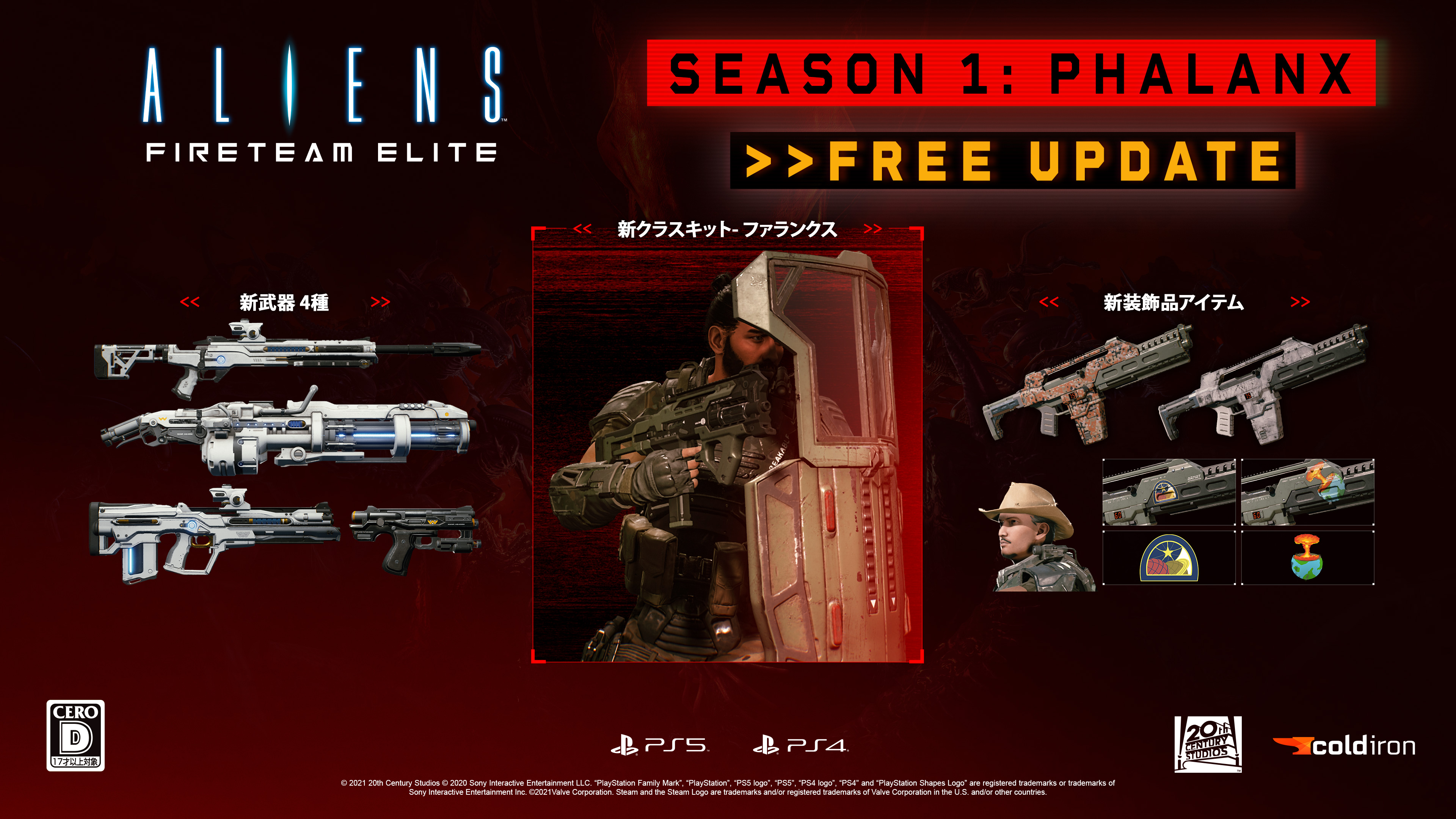 各シーズンでは無料のコンテンツアップデートが行われ、「シーズン1:ファランクス」は、今回追加される新クラス「ファランクス」にちなんで名付けられています。