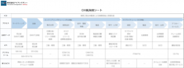より多くの方にDX航海図のイメージをご理解いただけるよう、中堅製造業向けの例として、DX航海図のサンプルシートを無料公開いたします。