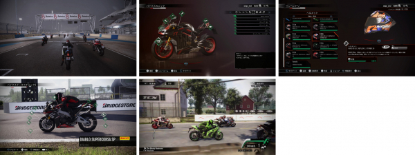 Honda、Kawasaki、Suzuki、Yamahaのマシンをアップグレードすることが可能な、スペアパーツ76点に加え、カラーリングならびにレーシングスーツがインベントリに追加される。