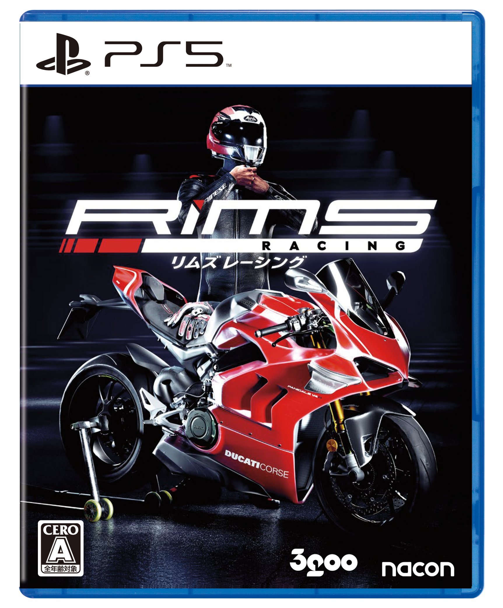RiMS Racing (C)2021 Published by Nacon and developed by RaceWard Studio. Aprilia (R) Official Licensee. Aprilia (R) is a registered trademark owned by Piaggio & C. S.p.A. and used under license by Nacon SAS. "SUZUKI", "S", and “GSX-R” are trademarks of Suzuki Motor Corporation and used under license. However, this product is neither manufactured nor distributed by Suzuki Motor Corporation. HONDA OFFICIAL LICENSED PRODUCT. Designed, manufactured, and distributed by or for Nacon SA. Intellectual property of Honda Motor Co., Ltd. used under license by American Honda Motor Co. Inc. The BMW logo, the BMW word mark and the BMW model designation are trademarks of BMW AG and are used under License. Official Product under license of Ducati Motor Holding S.p.A. Trademarks, design patents and copyrights are used with the approval of the owner NÜRBURGRING 1927 GmbH & Co. KG. MOTUL and the MOTUL LOGO are registered trademarks of MOTUL (SA). All rights reserved. The CASTROL logo, POWER 1 and OIL IN ACTION - POWER 1 are trademarks and are used with permission from Castrol Limited. PIRELLI and PIRELLI logo are trademarks of Pirelli & C. S.p.A.; SCORPION, SCORPION logo, METZELER, ELEPHANT logo, “FLASH” logo are trademarks of Pirelli Tyre S.p.A. All trademarks are used under license. Tyre designs are property of Pirelli Tyre S.p.A. and used under license. Published and distributed by 3goo K.K. in Japan.